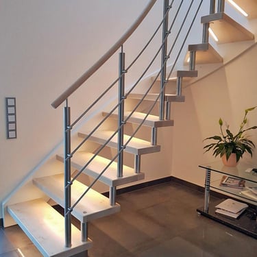 Bei diesen freitragenden Treppen bestehen die tragenden Elemente aus Bolzen.