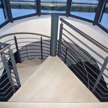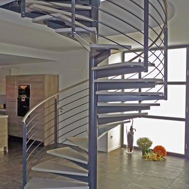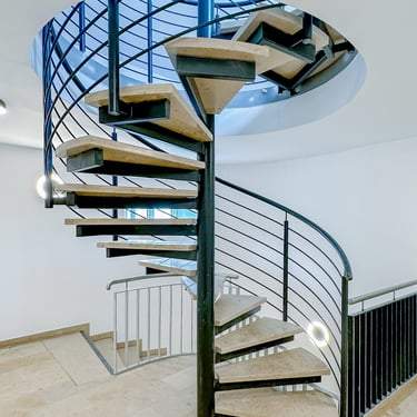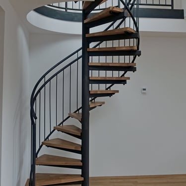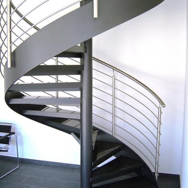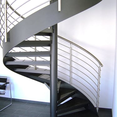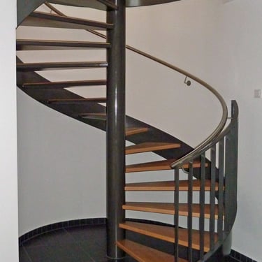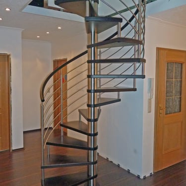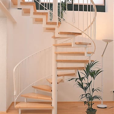 Durch das zentrale Rohr sind diese Treppen besonders platzsparend.
