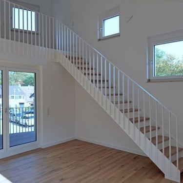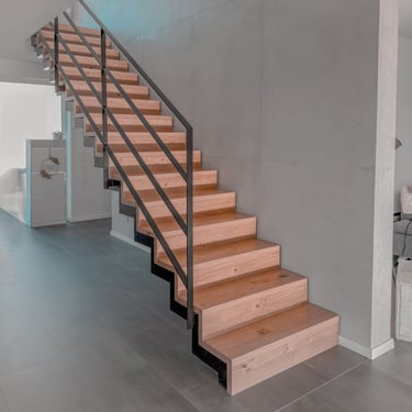 Der Klassiker unter den Treppen - kennzeichend durch die freitragende Unterkonstruktion.